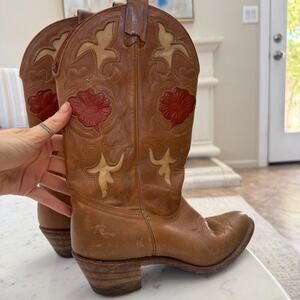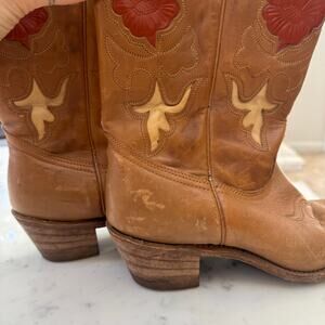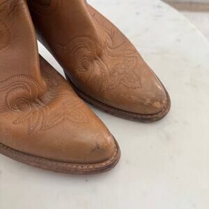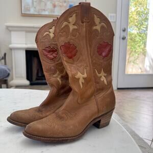 Vintage Tan Brown Leather Embossed Cowboy Boots