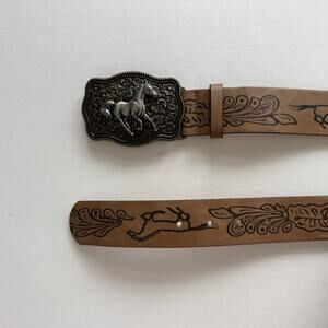 Vintage Tan and Brown Western Belt with Horse Buckle