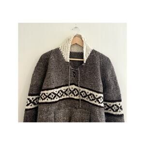 Vintage Tan Cream Handmade Wool Hand Knit Poncho Pullover Sweater Mens Medium