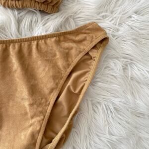 Vintage Tan Faux Suede Halter Triangle High Cut Bikini Swimsuit Boho Western