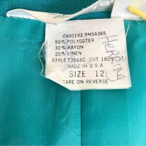 Vintage Tan Jay Div of Nygard Linen Blend Teal Open Front Blazer Jacket Women 12