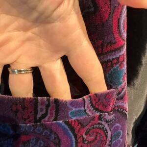 Elevate your wardrobe with this stunning vintage Tan Jay velour blazer. This blazer features a unique purple and red paisley pattern, adding a touch of elegance and sophistication to any outfit. Made in the USA, this blazer is a testament to quality craftsmanship and timeless style. The soft velour material ensures a comfortable fit, while the practical pockets add functionality. Perfect for both casual and formal occasions. Add a touch of vintage charm to your wardrobe with this exceptional piece!