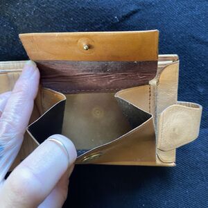 Vintage Tan Leather Bifold Wallet. Snap Closure. New But With Blemish. USA.