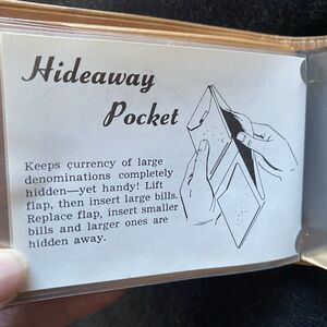 This Vintage Tan Leather Bifold Wallet with a snap closure is a unique and stylish accessory. Made in the United States in the 1960s, this original piece exudes a Retro or Rockabilly look that is perfect for everyday use. The brown leather material adds a touch of sophistication, making it suitable for adult unisex individuals looking to add a touch of vintage flair to their wardrobe.