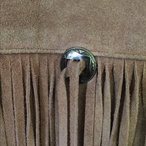 Broken in tan leather fringe jacket. Fits like a M/L