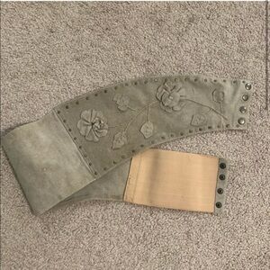Vintage Tan Low Waist Snap Floral embroidery Belt
