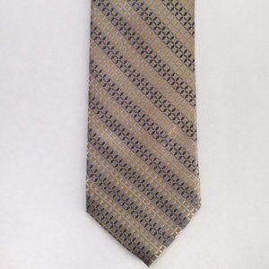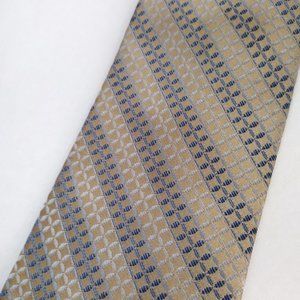 Vintage Tan Metallic Geometric Striped Silk Neck Tie 4 x 60