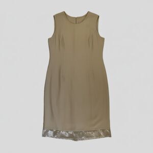 Vintage Tan Mocha Neutral Sleeveless Minimalist 90s Chic Satin Trimmed Dress - L