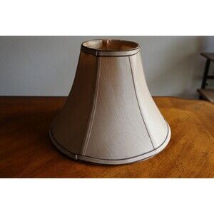 Vintage Tan Silky Fabric Lampshade 8.5" Tall Round Bell Shape 6 Panels