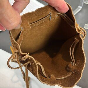This vintage tan suede leather beaded drawstring bag exudes a boho style perfect for women looking for a unique accessory. The brown color and suede material give it a timeless and classic look, while the drawstring closure adds a trendy touch. Perfect for adding a touch of vintage, boho flair to any outfit, this specialty handbag is a must-have for those who appreciate retro fashion.