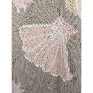 Vintage Tan Sweater Medium Shell Knit Print Christina Tan Pink Pastel Woven Vest Sleeveless