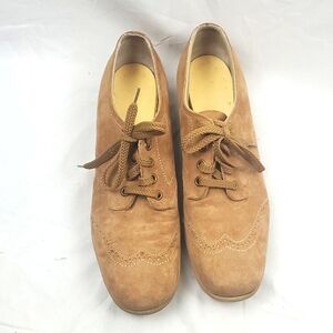 Classic tan flats with lace-up design. Comfortable and stylish. Perfect for everyday wear.