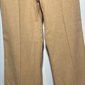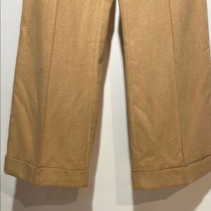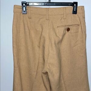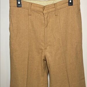 These tan vintage pants offer a relaxed fit with a wide-leg design, perfect for a smart casual look. Made from traditional chino fabric, they feature a flat front and a clean, pressed appearance. Ideal for business casual settings, these pants provide comfort and style.