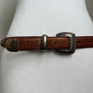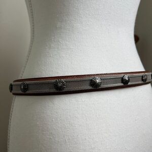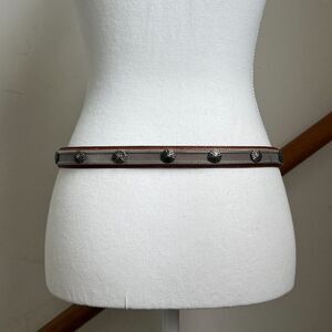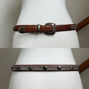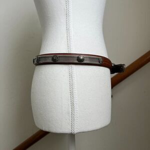 Vintage Tan Leather Western Waist Belt Skinny Statement Silver Hardware Concho