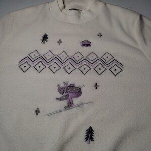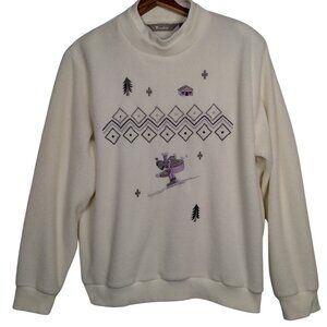 Vintage Tanjay Ski Sweatshirt Off Cream Fleece Double Crew Neck Skiing Winter