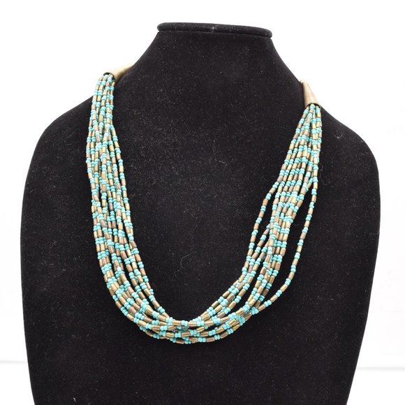 Vintage Tanjore Bead and Brass Statement Necklace Multi Strand