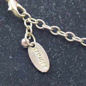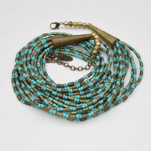 Stylish brass coil tubes connect the strands of beads to the chain in a stylish way.