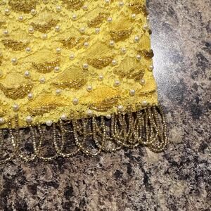 Vintage Tank Top Beaded Lace Mod 60s 70s Cocktail Embellished Retro Yellow 34 2