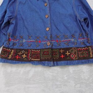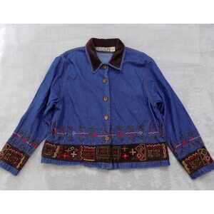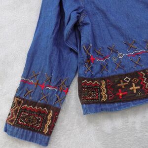 Vintage Tantrum Blues Denim Jacket Large Southwest Leather Boho (BUNDLE PRICE $7
