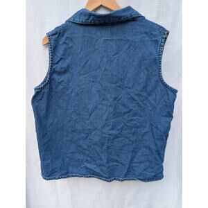 Vintage Tantrum Blues Full Zip Floral Embroidered Denim Vest Sz 1X Retro Grandma