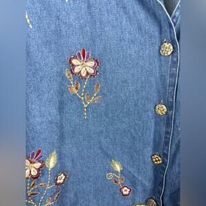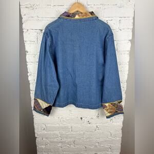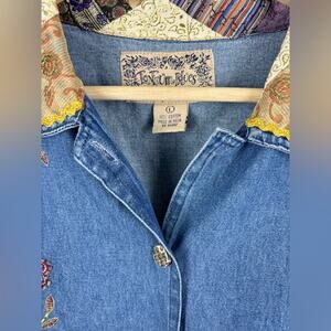 Vintage Tantrum Blues Patchwork Embroidered Jacket. Patches of velvet, tapestry, etc. In a women’s size Large. 100% Cotton. In excellent vintage condition. Some spots here and there due to age. Measurements approximately bust 23”, length 24”.
