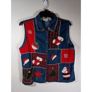 Vintage Tantrums Jingle Bell Festive Christmas Patchwork Denim Vest Size 18 / 20