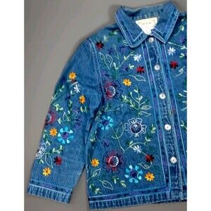Vintage Tantrums PL Embroidered Denim Jacket Boho Cottagecore Floral Jean Y2K