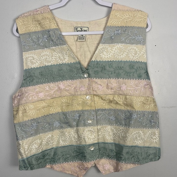 Vintage Tantrums Vest Women Pastel Striped Embroidered size petite medium