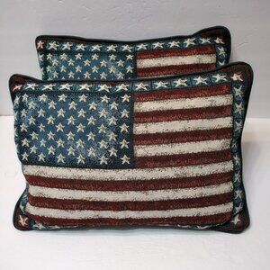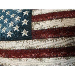 Vintage Tapestry American Flag Accent Pillow, Patriotic July 4th USA