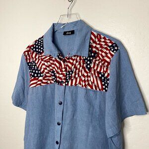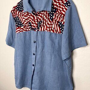 Vintage Tapestry American Flag U.S.A 80's 90's Button Front Top