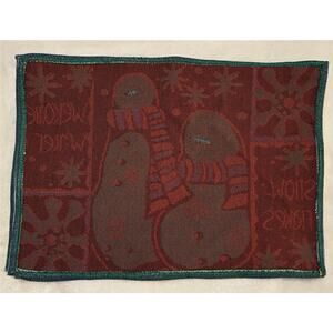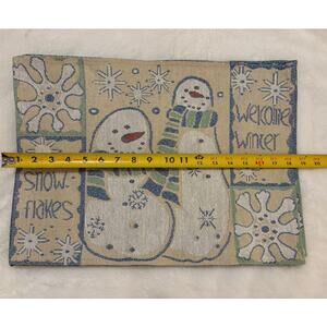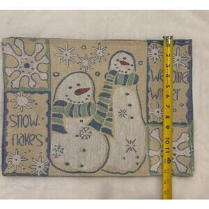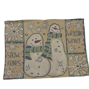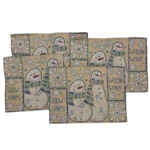Vintage Tapestry Cream Blue Sage Green Winter Snowman Set of 4 Placemats