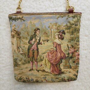 Vintage Tapestry Crossbody Shoulder Handbag Purse Romantic Victorian Gold Chain