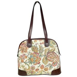 Vintage Tapestry Floral Structured Shoulder Bag with Brown Leather Trim Fall Bag