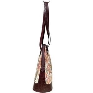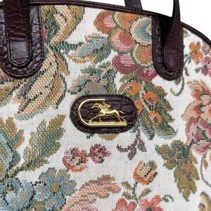 Beautiful vintage Cristian structured shoulder bag featuring a classic floral tapestry design with rich burgundy croc-embossed leather trim and straps. The gold equestrian emblem adds a polished accent. Made in Italy with genuine leather details, perfect for fall or year-round cottagecore-inspired style. Brand: Cristian, Made in Italy Size: Medium Measurements: 10.5”H x 13.5”L x 5”D, 12” strap drop Material and care: Tapestry fabric with genuine leather trim, spot clean Condition: Excellent vintage condition, minimal wear 💼 Bundle your likes for a special offer! 📬 Fast shipping vintage tapestry purse, Cristian Italy handbag, floral tapestry bag, leather trim shoulder bag, equestrian logo purse, cottagecore bag, Italian vintage handbag, structured floral bag, brown leather tapestry purse, 90s tapestry handbag, vintage boho purse, Italian leather floral bag, made in Italy handbag, classic shoulder bag, timeless vintage purse #vintagebag #tapestrybag #cottagecorestyle #madeinitaly #cristian