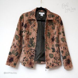 DressBarn brand, Vintage Tapestry Floral Zip Up Jacket. Fully lined. Sunflowers pattern
