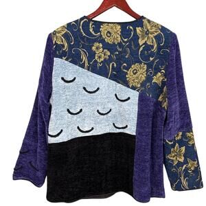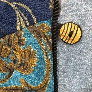 Vintage Tapestry Jacket Patchwork Wood Button Blue Jewel Tones SZM Indigo Moon