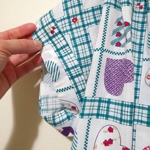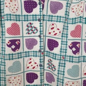 Vintage Tapestry Madras Style Heart Pattern Rolled Sleeve Button Down Size Large