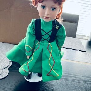 Tara G Series K Dublin Vintage Collector Doll. Traditional Irish Dancer Dress. 17” tall. In original box. Porcelain and cloth. Excellent preowned condition. Stored in original box.