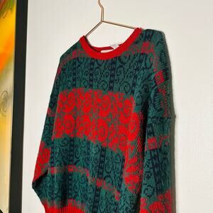 Vintage Tarrazia Red Green Holiday Crewneck Longsleeve Geometric Sweater Size M