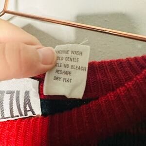 This vintage Tarrazia red and green holiday crewneck longsleeve geometric sweater is the perfect addition to your holiday wardrobe. It is made of a soft and comfortable acrylic blend and features a classic crewneck design. The sweater is decorated with a beautiful geometric pattern in red and green. It is a size M and is in excellent condition.
