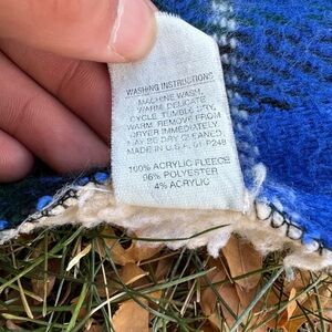 Vintage Tartan Plaid Fleece Lined Throw Blanket 50x70. By Patricia R. 96% polyester, 4% acrylic. 100% fleece. In good clean condition