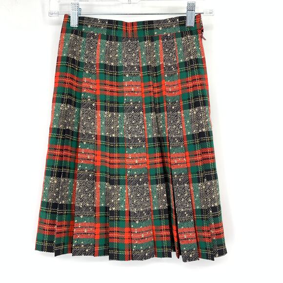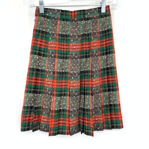 Vintage Tartan Plaid Skirt Womens Size 00 Pleated A-Line 24” Waist Holiday