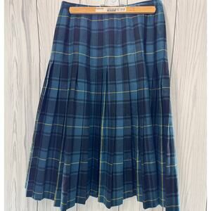 Vintage Tartan Plaid Wool Pleated Skirt Size Large Retro Cottage Boho