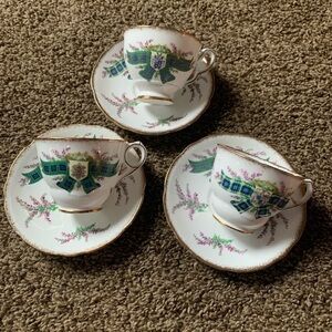 Vintage Tartan Series by Royal Darwood Set of 3 Tea Cups & Saucers