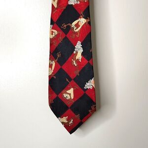 Vintage Tasmanian Devil neck tie. Black and dark red checker with taz overlaying