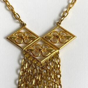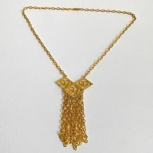 Vintage Tassel Necklace Gold Tone 60s Mod Chain Mid Century Modern Retro 60s 22”