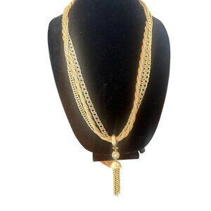 Vintage Tassel Necklace Yellow Gold Tone 18" with Enhancer and matching earrings