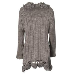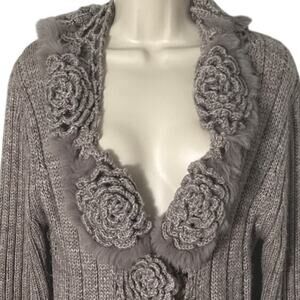 Vintage Taupe Gray Floral Faux Fur Trimmed Crochet Cardigan Toggle Closure XS/S