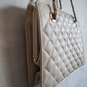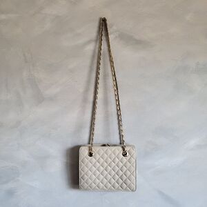 Vintage Taupe Saks Fifth Avenue Quilted Leather Shoulder Bag Made in Korea Rare