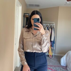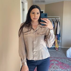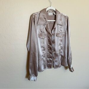 Vintage Taupe Silk Long Sleeve Button Down Top